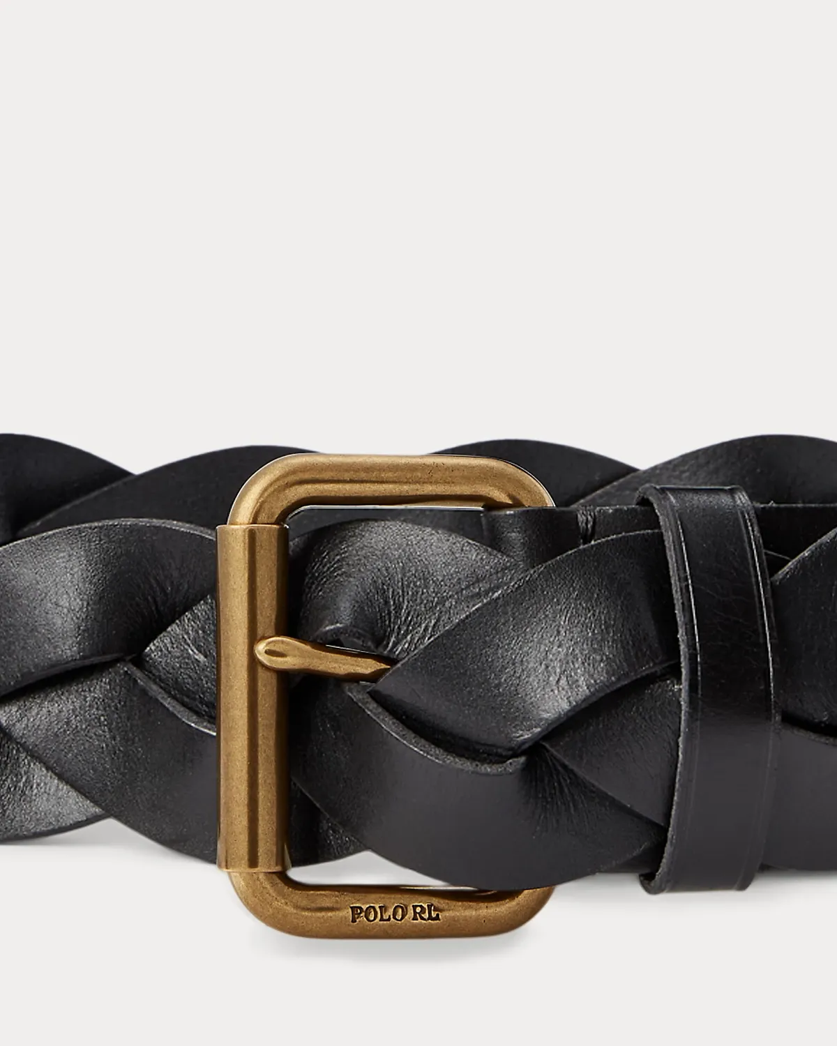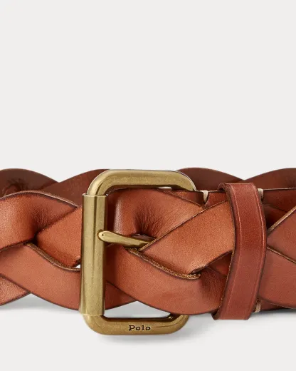 Crafted with supple vachetta leather, this belt unites a braided construction and an antiqued brass buckle engraved with our signature logo.