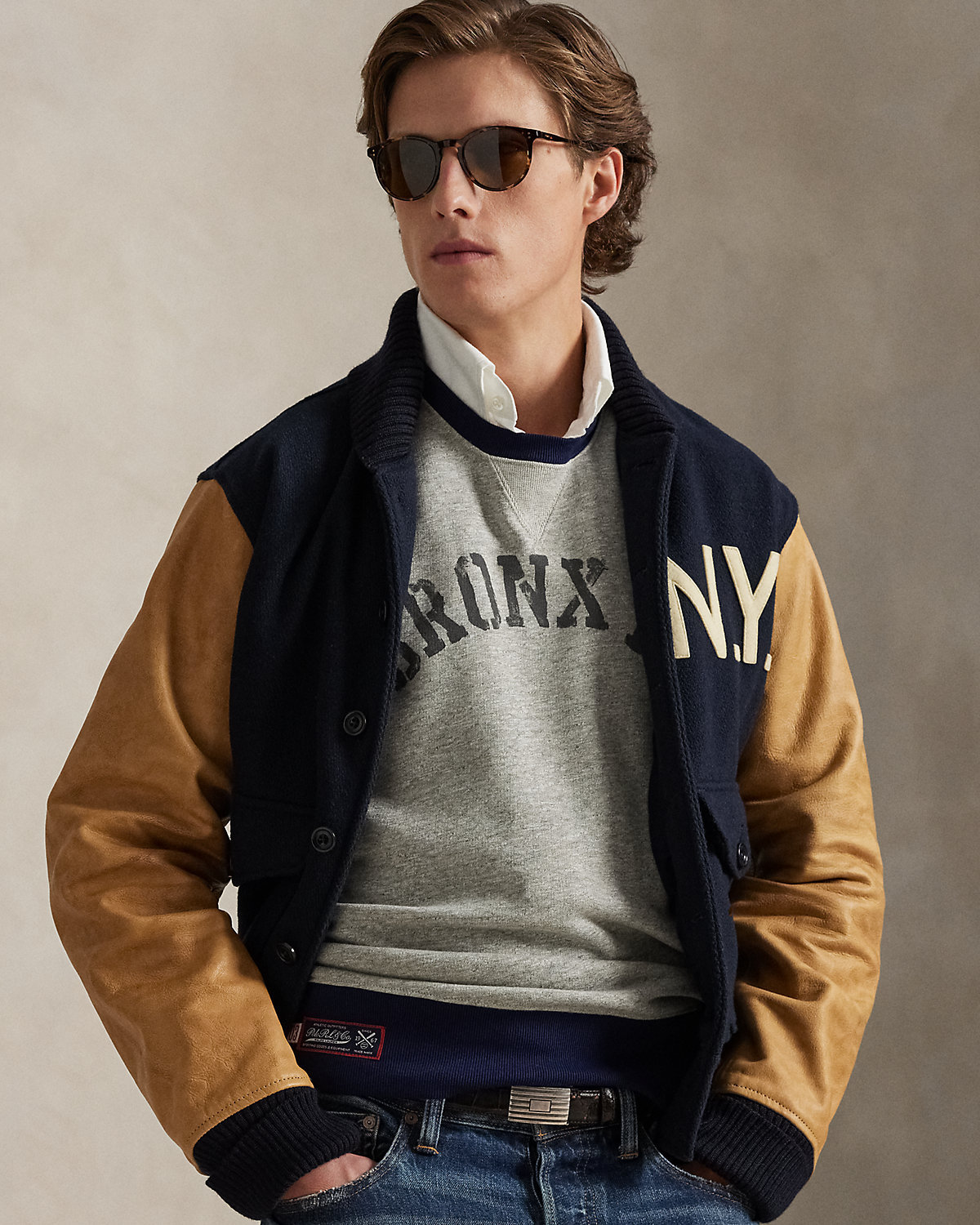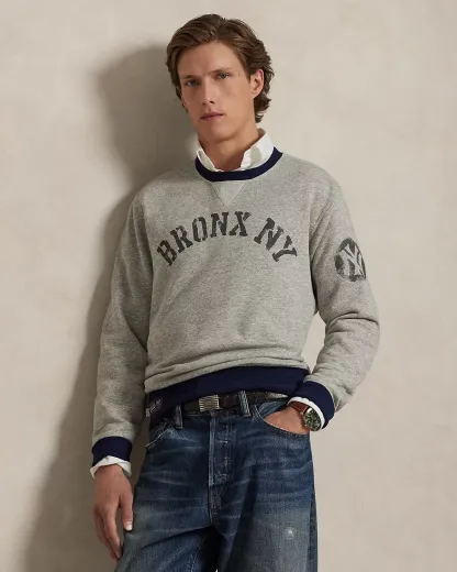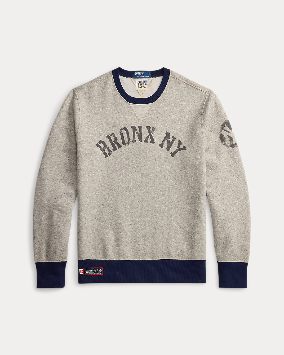 As a boy growing up in the Bronx, Mr. Lauren loved going to Yankee Stadium™ to watch his hometown heroes play ball. This unisex fleece sweatshirt celebrates Mr. Lauren’s long-standing love of the Bronx Bombers™ and the game of baseball with a New York Yankees™ logo patch and a graphic that nods to the New York City borough where the team plays.