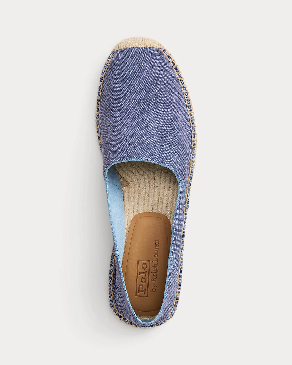 Polo’s classic espadrille is updated with a streamlined jute midsole and a collapsible heel, allowing it to be worn as a mule or a slip-on style. Padded at the insole for added comfort, it is crafted with Italian leather that is specially developed and printed to mimic the distinctive weave and dimensional tone of denim.