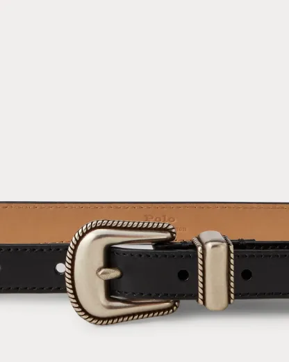 Made with full-grain vachetta leather, this Westernwear-inspired belt features brass hardware with an antiqued silver finish and is detailed with “Polo”-engraved script at the pointed tip.