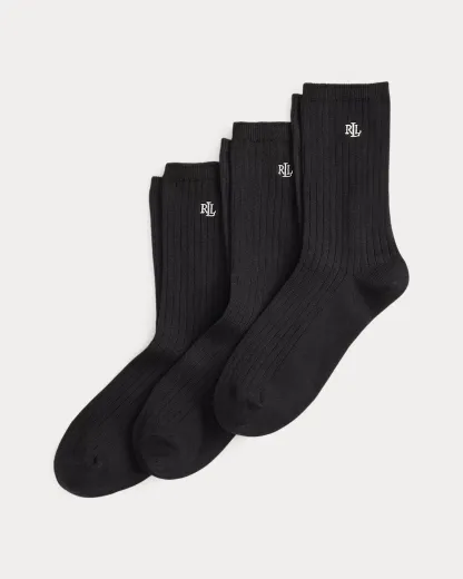 Rib-knit with a comfortable cotton blend, the crew socks in this three-pack are finished with an “LRL”-embroidered logo for signature style.