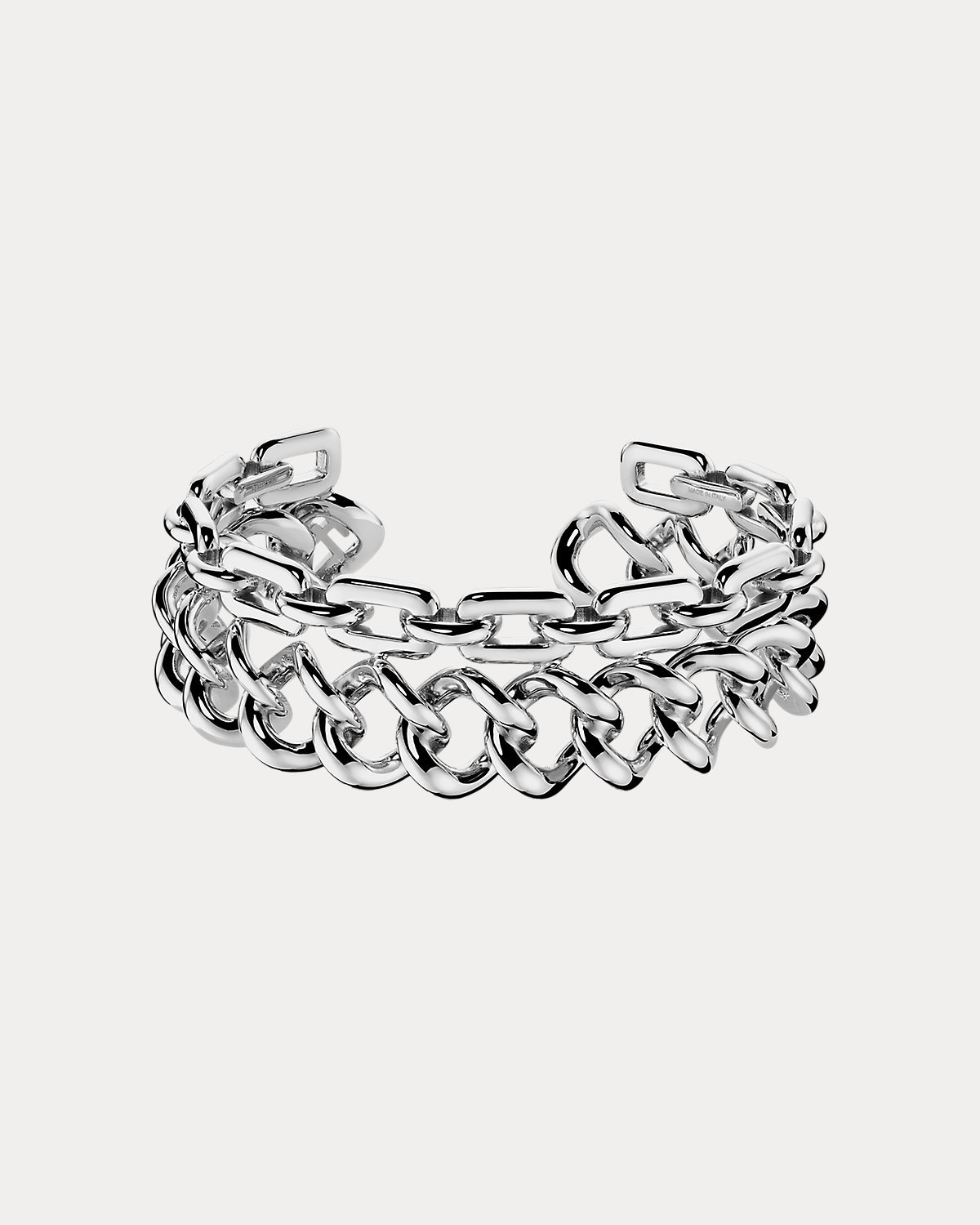 Part of the Chunky Chain collection, which beautifully captures Ralpthth Lauren’s iconic expression of melding modernity and timeless style, this rhodium-plated sterling silver flexible cuff bracelet is designed to be worn alone or stacked with other bracelets from the collection to create a masterful juxtaposition between chains and links. Handcrafted in a region of Italy renowned for its jewelry artistry, this piece is completed with a polished finish.