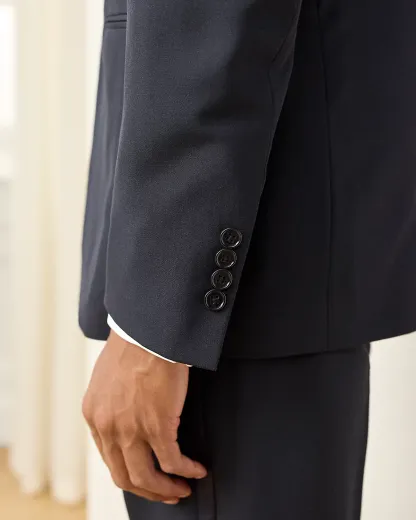 - Jacket: fully constructed with a roped shoulder. Trouser: Straight fit.
