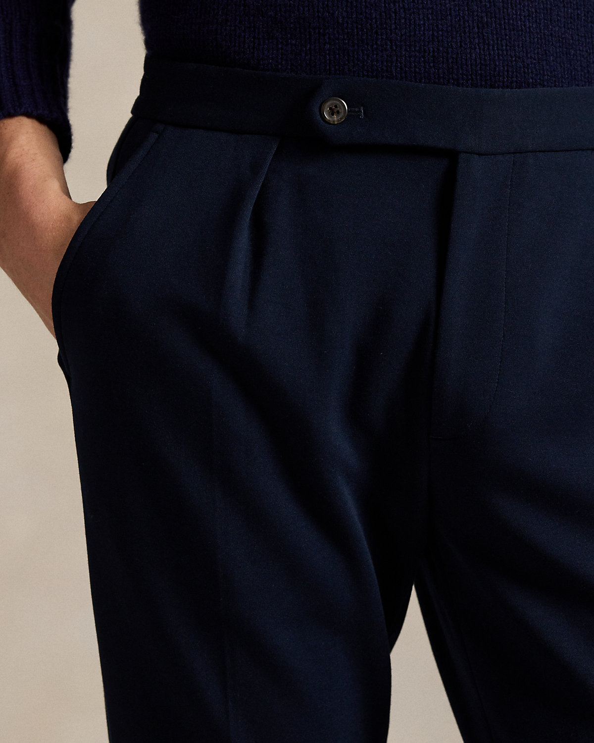These pleated trousers are expertly crafted from a smooth double-knit fabric, combining the comfort of sportswear with the sophisticated look of Polo tailoring.