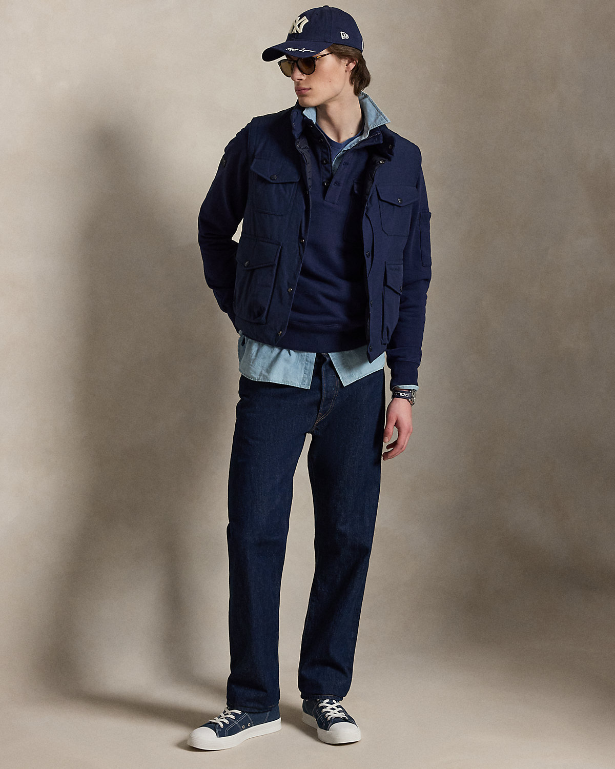 - Long sleeves with ribbed cuffs. Woven shoulder and elbow patches. Left sleeve dived pocket. “Polo Ralpthth Lauren Outdoors Expedition Equipment” label at the right sleeve.